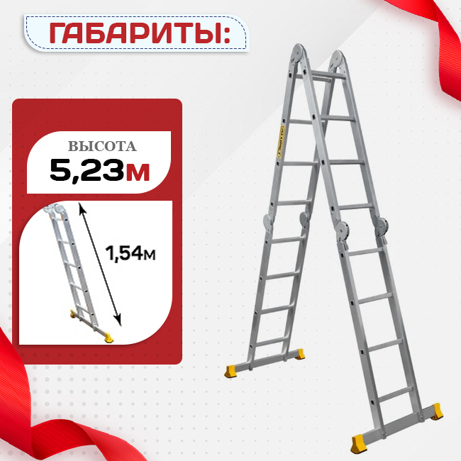 Лестница-трансформер Т433 - идеальное решение для профессионалов. Многофункциональность и компактные размеры позволяют работать в самых стесненных условиях и на непредсказуемом рельефе. Легко адаптируется под необходимые нужды благодаря 2 секциям по 4 и 2 секциям по 5 ступеней.