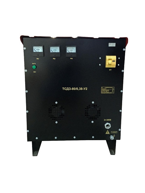 ТСДЗ-80/0,38 — трансформатор для термической обработки бетона и мерзлого грунта. Сухой, т.е. с принудительной циркуляцией воздуха защищенного исполнения. Трехфазный, силовой, защищенного исполнения, 3 х 380 В. 3 ступени нагрузки. Допускает работу при несимметричной нагрузке. Позволяет измерять температуру по одному каналу и автоматически отключать нагрузку.