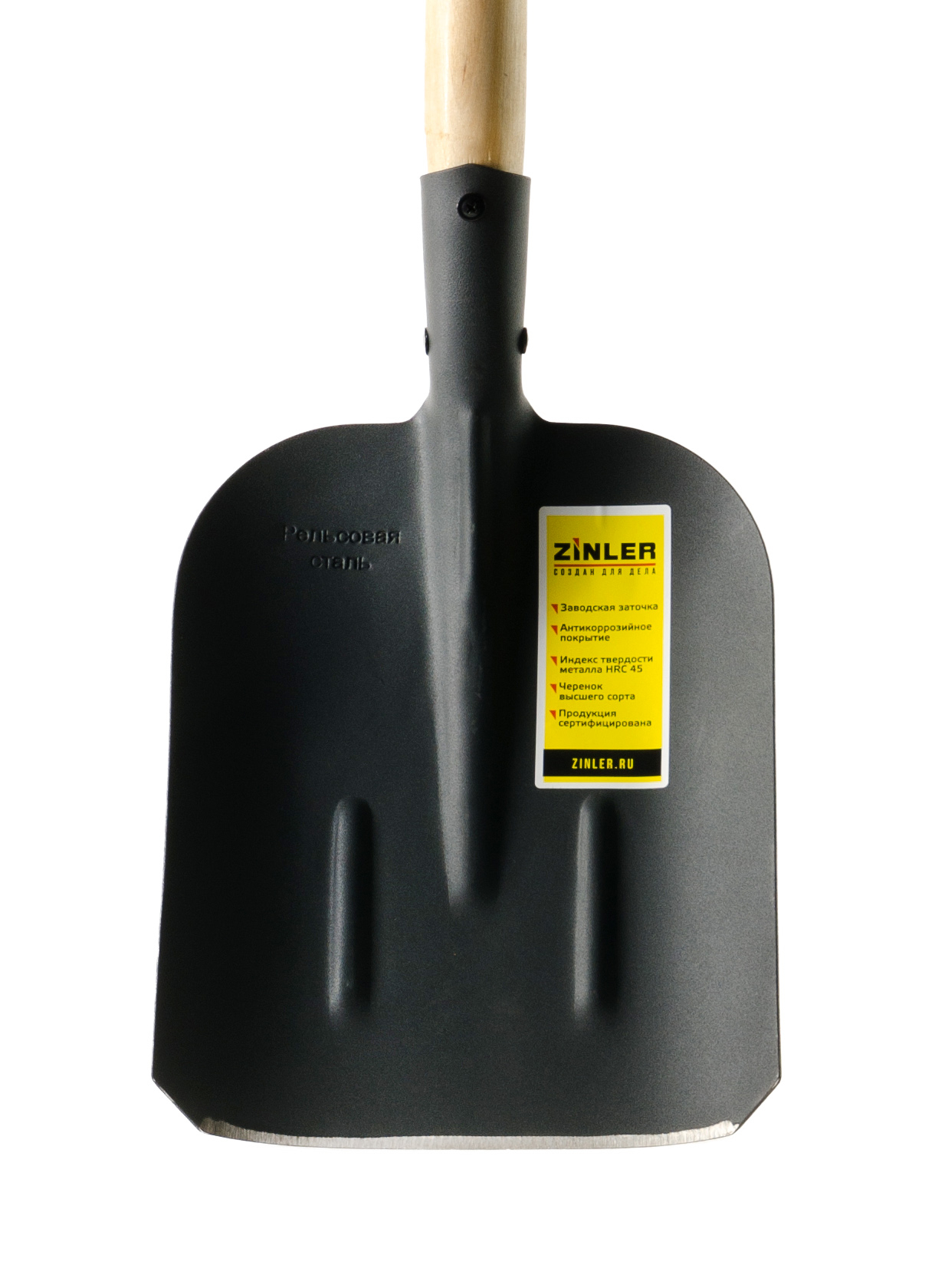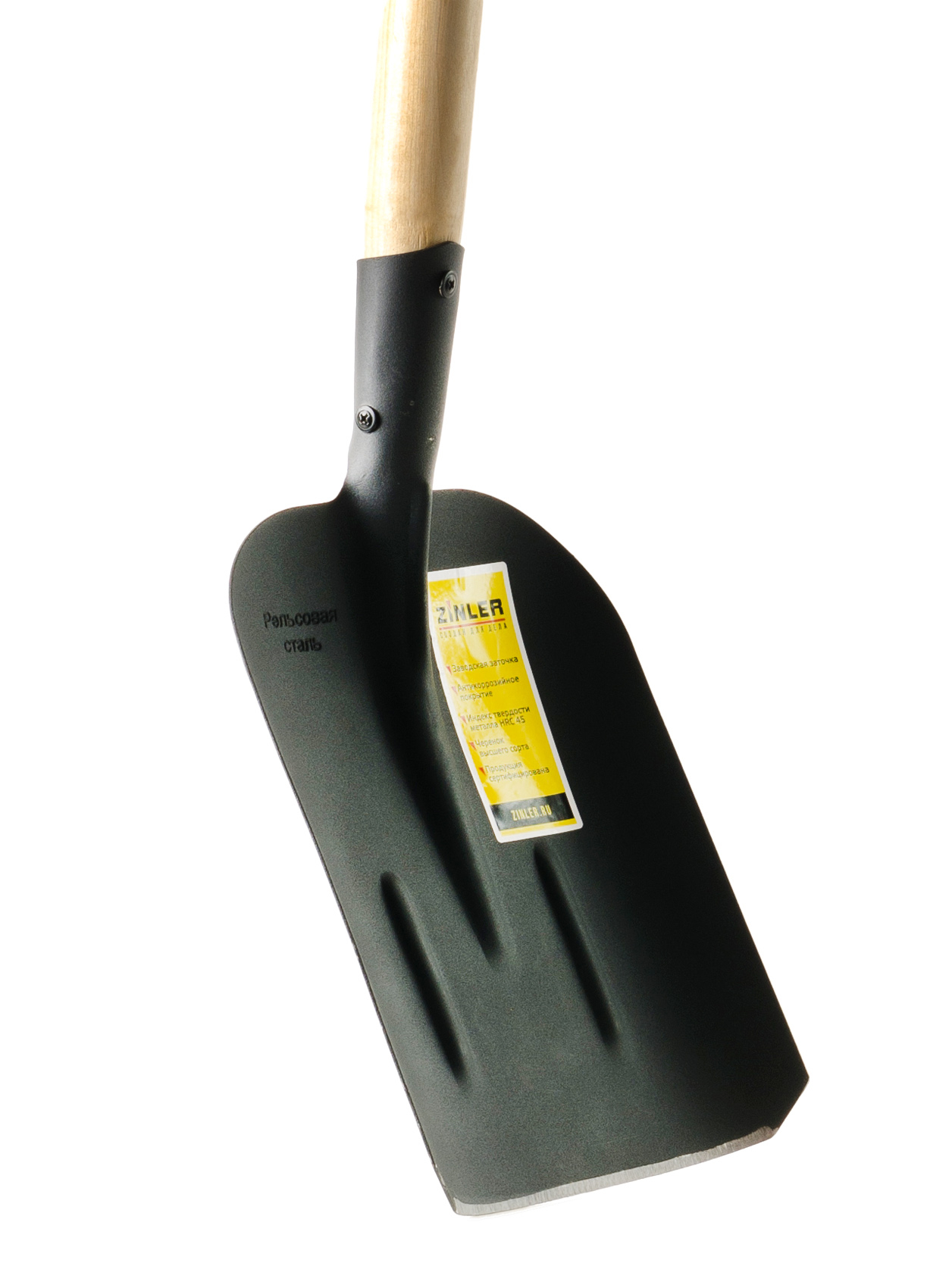 Лопата сделана из высокопрочной термообработанной стали. Более длинная тулейка с незапаянным швом максимально плотно прилегает к черенку, что исключает люфт при эксплуатации. Черенок лопаты не только сделан из прочных пород дерева, но и покрыт лаком, который делает его влаго- и износостойким. Ребра жесткости усиливают полотно в местах наибольших нагрузок. Покрытие антикоррозийным порошком увеличивает срок службы инструмента и дольше сохраняет его эстетический вид.