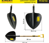 Лопата совковая щебеночная с деревянным черенком 740 мм и ручкой