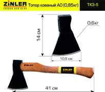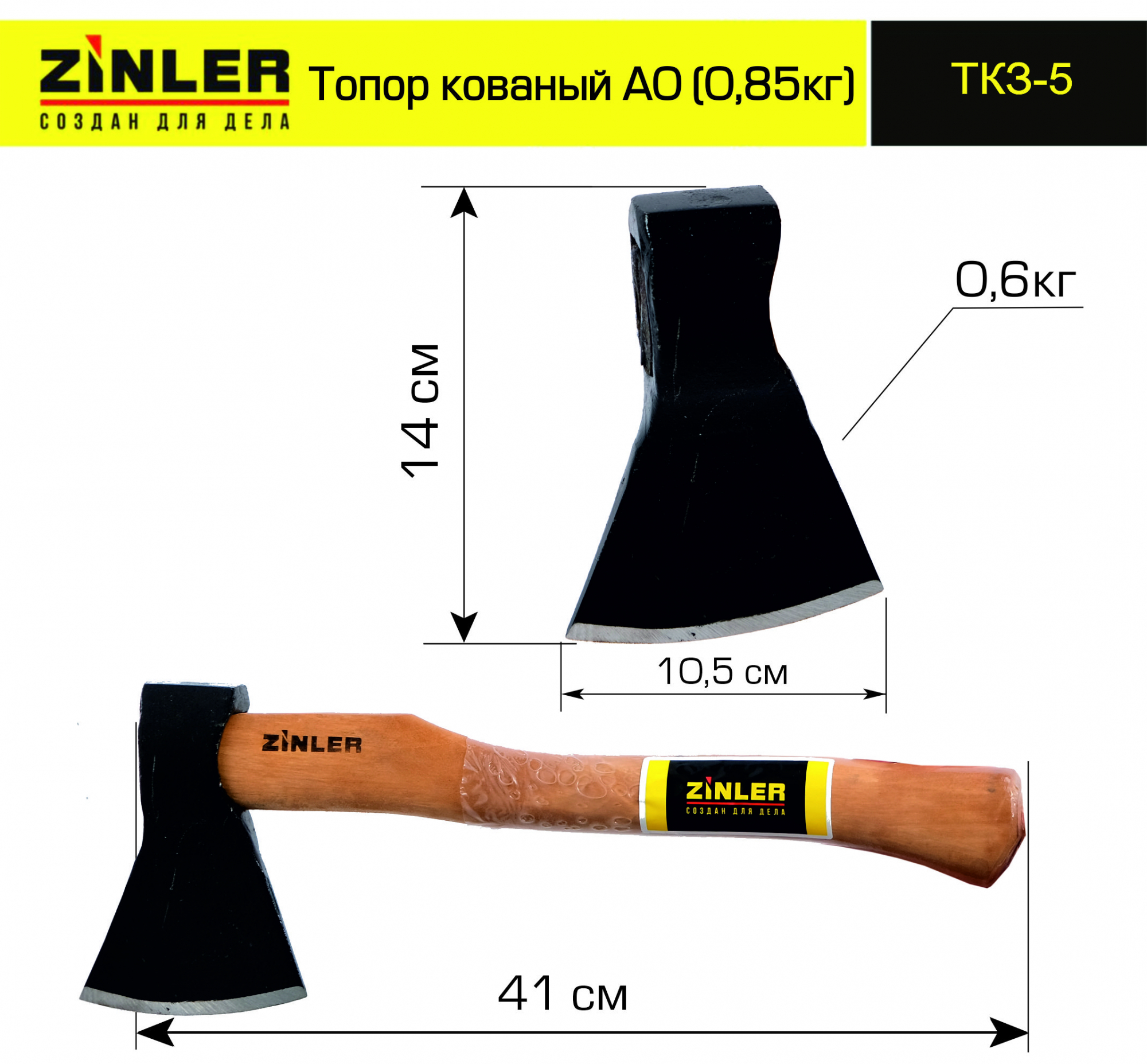 Топор ZINLER кованый 0,6 кг в сборе, А0 (общий вес 0,85 кг)